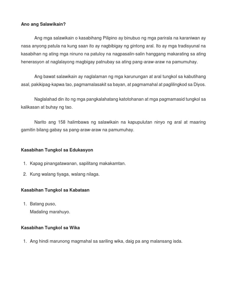 Ano Ang Salawikain At Mga Salitang Malalalim Ng Kahulugan